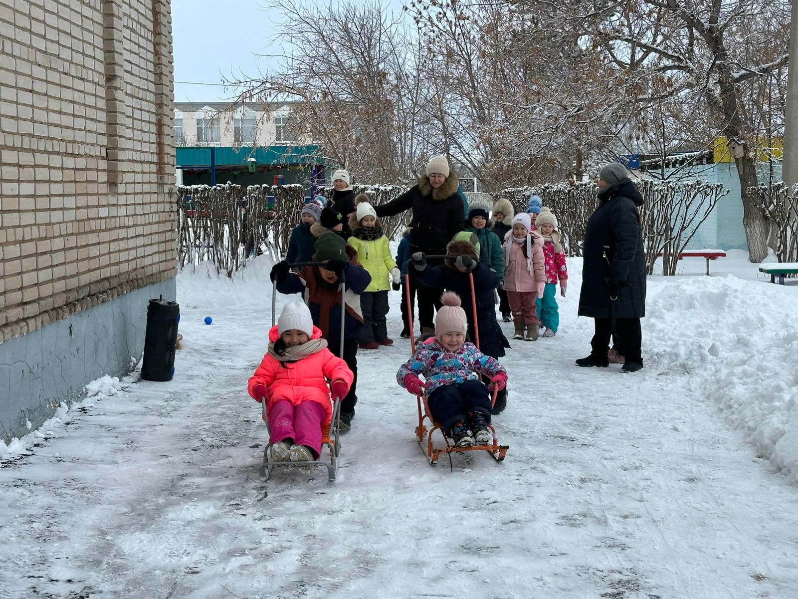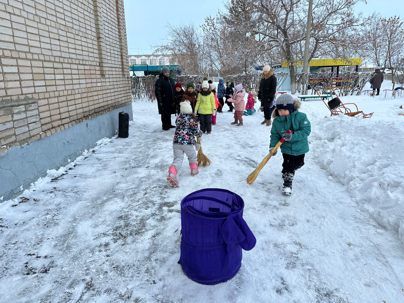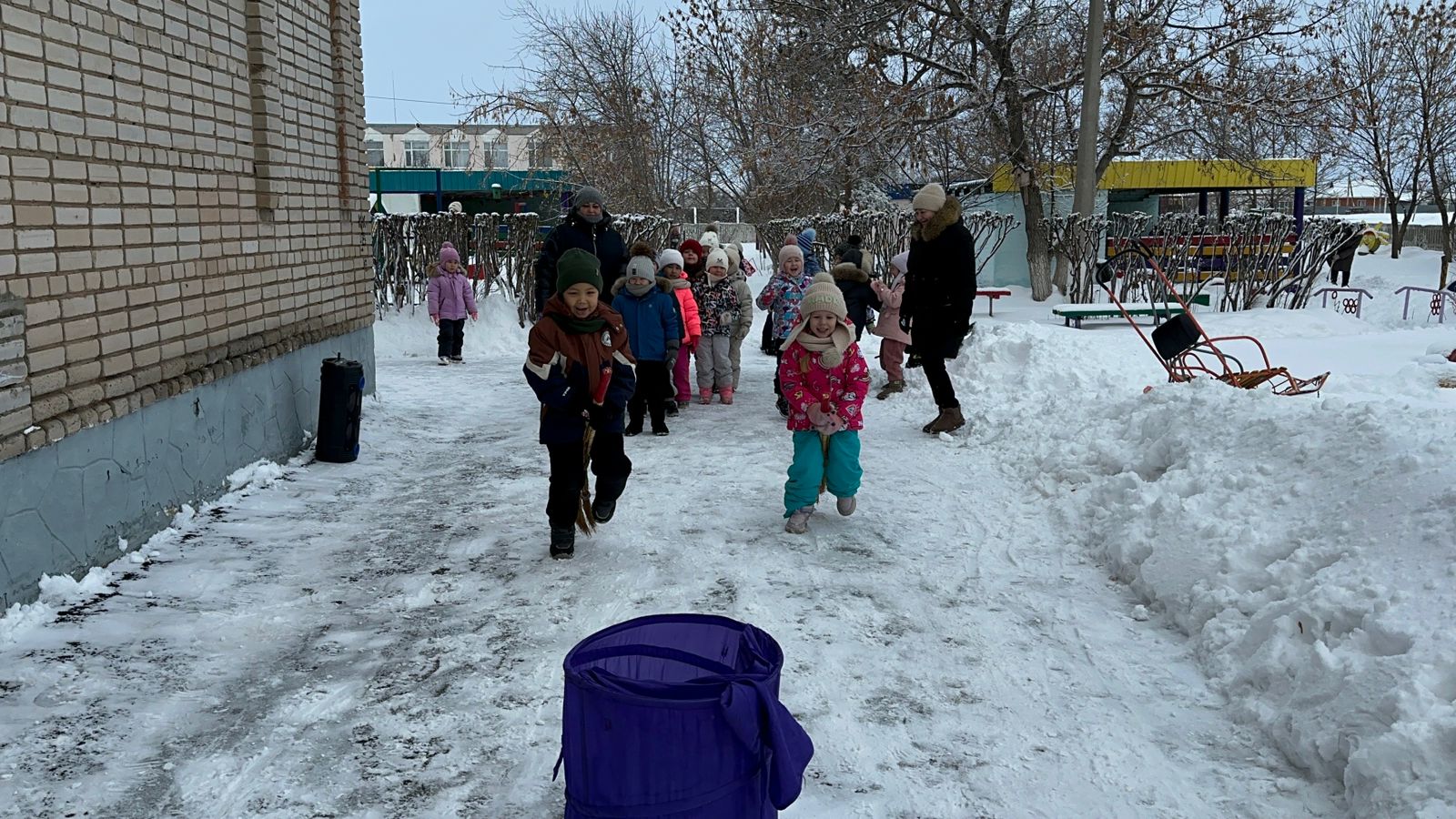 Қыс кезінде мұндай іс-шаралар балаларға денсаулық, күш пен қуаныш әкеледі. Сырғатпатаяқпен, доппен, шанамен достасатындар суыққа берілмейді және аязға батыл қарсы тұрады! Іс-шара таза ауада өтті. Мерекеге «Айгөлек» мектепалды даярлық тобының балалары нағыз спорттық командаларға айнала отырып, қатысты. Жарыс басталар алдында көңілді бой сергіту өтті. Содан кейін баба Яга балаларға қонаққа келді. Баба Ягамен бірге балалар қысқы спорттық эстафеталарды орындады: шанамен жарыс; сыпырғышпен ұшты; қармен ойнады; түрлі-түсті мұздан қаршықтарды қойды. Барлығы ұсынылған тапсырмаларды сәтті орындап, көңілді уақыт өткізді! Балалар өздерінің күш - қуатын, ептілігін, ұйымшылдығы мен ынта-жігерін көрсетті! Бұл біз аяздан қорықпайтынымызды және таза ауада белсенді, көңілді уақыт өткізуге дайын екенімізді дәлелдеген күн болды!