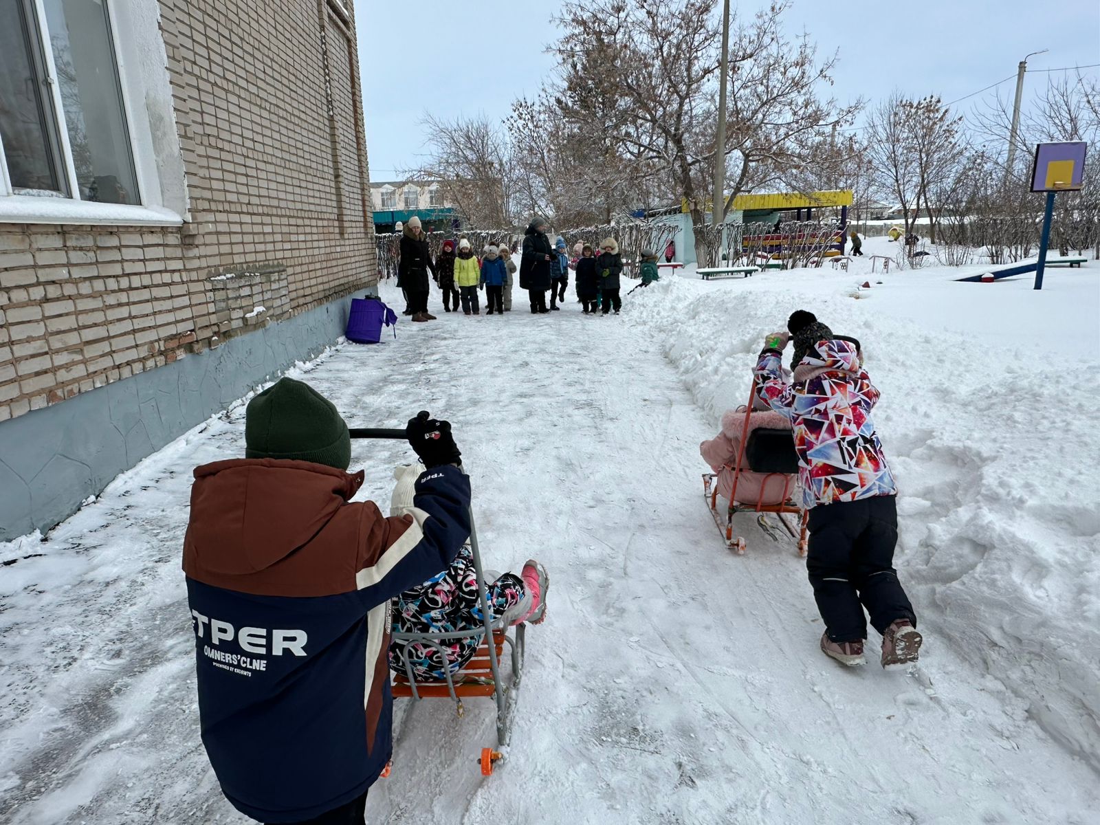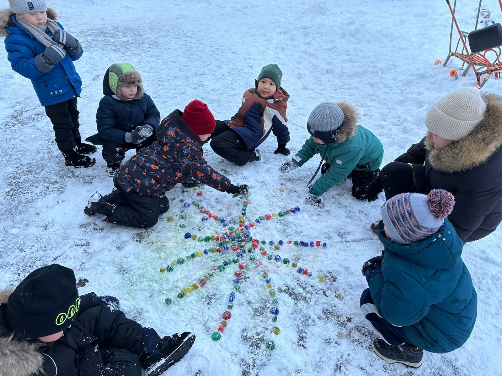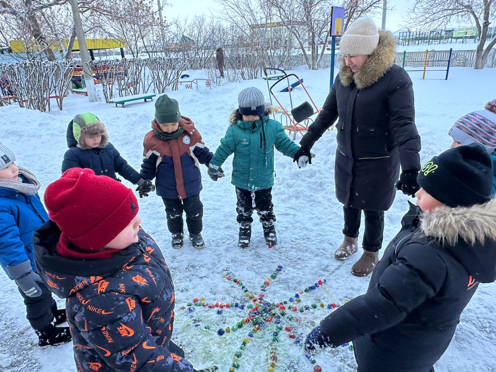 Қыс кезінде мұндай іс-шаралар балаларға денсаулық, күш пен қуаныш әкеледі. Сырғатпатаяқпен, доппен, шанамен достасатындар суыққа берілмейді және аязға батыл қарсы тұрады! Іс-шара таза ауада өтті. Мерекеге «Айгөлек» мектепалды даярлық тобының балалары нағыз спорттық командаларға айнала отырып, қатысты. Жарыс басталар алдында көңілді бой сергіту өтті. Содан кейін баба Яга балаларға қонаққа келді. Баба Ягамен бірге балалар қысқы спорттық эстафеталарды орындады: шанамен жарыс; сыпырғышпен ұшты; қармен ойнады; түрлі-түсті мұздан қаршықтарды қойды. Барлығы ұсынылған тапсырмаларды сәтті орындап, көңілді уақыт өткізді! Балалар өздерінің күш - қуатын, ептілігін, ұйымшылдығы мен ынта-жігерін көрсетті! Бұл біз аяздан қорықпайтынымызды және таза ауада белсенді, көңілді уақыт өткізуге дайын екенімізді дәлелдеген күн болды!