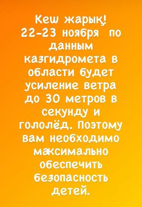 Көктемгі су тасқынының басталуымен байланысты, сондай-ақ балабақшадағы Төтенше жағдайлар мен жазатайым оқиғалардың алдын алу мақсатында №12 балабақшада келесі іс-шаралар өткізілді: ерте көктемде болатын табиғаттағы өзгерістер туралы мектеп жасына дейінгі балалардың елестету ойларын бекітті, өз денсаулығын күтуге және су айдындарының маңындағы жүріс-тұрыс мәдениетіне үйретті, балаларды табиғаттағы қауіпті жағдайлармен таныстырды. Қорытындылай келе, көктемгі су тасқыны кезінде мына жағдайдарда тыйым салынатыны ескерілді: