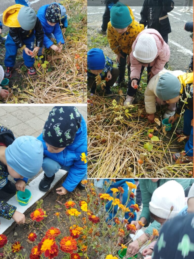 «Табиғатқа дос ретінде кіріңіз» жобасын жүзеге асыру аясында біздің “Күншуақ” тобымыздың балалары гүлдердің сұлулығын, күзгі түстерді, ашық-жарқындылықты, әртүрлілікті тамашалайды. Сондай-ақ, балалар келесі жылы отырғызу үшін барқытгүл мен зинния тұқымдарын жинауға қатысты. Табиғатта тұқым жинау балаларға пайдалы еңбек дағдыларын қалыптастыруға көмектеседі, балаларды табиғатқа ұқыпты қарауға үйретеді. Балалардың экологиялық мәдениетін тәрбиелейді.
